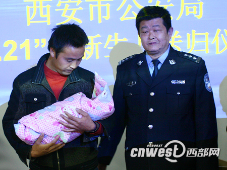 備受公眾關注的西安交大一附院丟失女嬰今天終于回到了父親嚴小紅的懷抱。今天(12月2日)下午西安市公安局專門舉行送歸儀式將女嬰交給他的父親嚴小紅,西安市公安局通過DNA鑒定,確定女嬰為嚴小紅和張蘭芳的親生女兒。