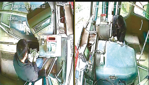 針孔攝像機(jī)拍下的司機(jī)“取錢”過程