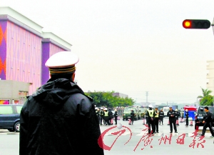 去年12月30日上午,東莞東坑鎮(zhèn)新東泰娛樂城與右邊東珠酒店之間的一條大路旁站了許多警察,在封鎖線里停著多輛警車,其中有14輛裝甲車。