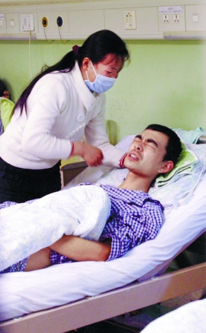 昨晚,右腎已經被摘除的高志強躺在北京朝陽醫院京西院區泌尿科病床上,妻子在一旁守護。為避免傷口感染,醫護人員不允許入內探望。