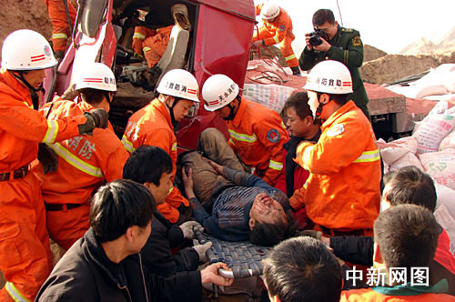 中新網蘭州1月27日電 (劉健 鞏剛)1月27日下午,甘肅天水消防官兵成功營救兩名車禍重傷受困群眾。