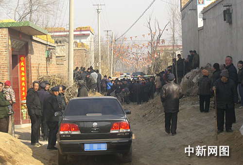 20日上午,記者走到現場時,看到上百村民聚集,事發地點拉上了警戒線,幾輛警車停在旁邊,有干警正在現場偵查。