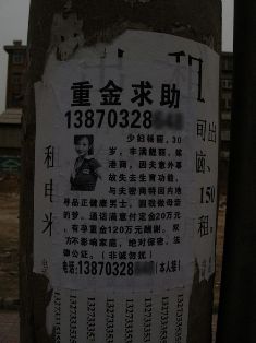 別一張小廣告內容大同小異:“《重金求助》少女楊麗,30歲,豐滿靚麗,嫁港商,因夫意外事故失去生育功能,與夫密商特回內地尋品正健康男士,圓我做母親的夢。通話滿意付定金20萬元,有孕重金120萬元酬謝。雙方不影響家庭,絕對保密,法律公正。(非誠勿擾)”聯系電話 13870328xxx(本人接)。