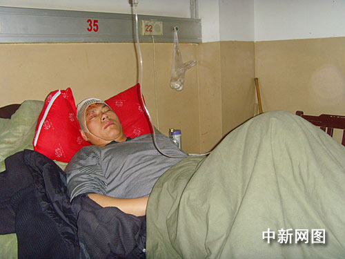 3月22日下午1時40分許,記者在阜陽市人民醫院急救中心二樓病房里,見到了肇事司機董飛,他躺在病床上,旁邊坐著一女子與其聊天。當發現有記者前來采訪拍照,該女子迅速離開,面對記者董飛一直不開口說話。隨后,病房內看守董飛的兩名警察阻止了記者采訪。