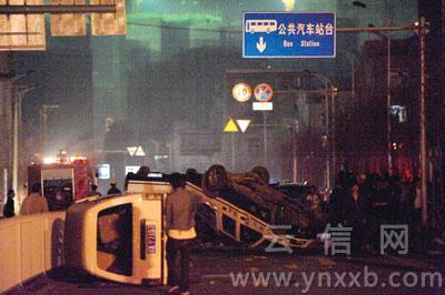 昨晚10時許,記者接到熱線電話稱,昆明北倉村大量群眾和城管隊員發生沖突。隨后,記者趕到位于北市區銀河大道旁北倉村事發現場時,多輛警車及城管的車停放在周圍。數百人圍著一輛微型貨車大叫“打人的城管人員就在車里”“兇手出來……”隨后,警察拉起了警戒線。不時有石塊、磚塊從人群中飛出,砸在微型貨車上。現場警察試圖制止但沒有效果。記者從一名官方人士處得知,昨晚7時許城管在執法時導致一名老人受傷,但在民眾的傳言中,變成了“城管打死人”,于是導致了大范圍沖突事件發生。