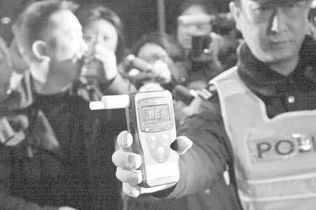 零點(diǎn)12分,一輛黑色的奧迪被民警攔了下來(lái)。記者眼看著測(cè)試儀上的紅字跳躍著往上升,達(dá)到86的時(shí)候才停下來(lái)。