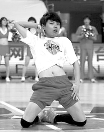 從4月1日起,網絡上就開始蔓延著聯賽期間暖場舞蹈隊的各種視頻。在這些視頻中,最吸引大學生們關注的并不是學生籃球明星或者漂亮的美女舞者,而是一名妝容艷麗、動作嬌媚的男生。