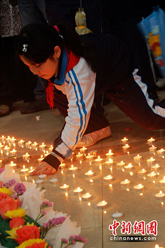 中新網武漢4月21日電 (徐金波 張芹 周剛)4月21日在青海玉樹發生地震后的第七天,武漢社會各界以各種形式沉痛悼念地震中遇難的同胞,并以各種形式伸出援助之手。