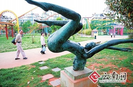 這是個喃意思,能否給個說法先?自打“2005中國·昆明首屆國際雕塑節”后,昆明市大觀公園西區就多了一些雕塑,造型那是相當詭異,其中不乏裸體雕塑。市民張先生好久不去公園了,前幾天看著后驚呼“搞不懂”,F實的情況是,多了這些雕塑后,關于這些雕塑該不該出現在公園里,某些雕塑是否有傷風敗俗的嫌疑的聲音,就一直沒有斷過。甚至有市民專門向昆明市有關部門表示,這些雕塑應撤出公園。為此,大觀公園誠請市民就這些雕塑作品發表真知灼見。