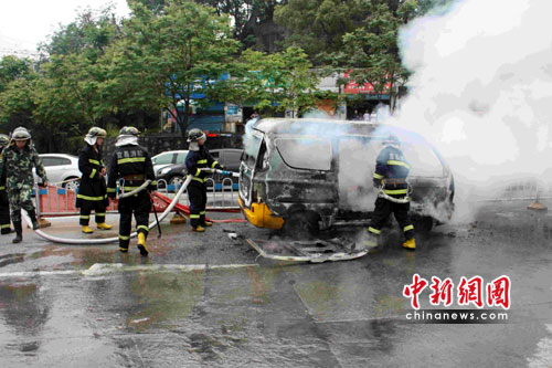 中新網(wǎng)宜昌5月7日電(郭曉瑩 王申)5月7日下午,湖北省宜昌市一輛黃色面包車失火,消防官兵接到報(bào)警后迅速趕到現(xiàn)場將火撲滅。