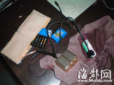在考場就座后,他們將針孔攝像頭對準(zhǔn)考試電腦屏幕,場外的操縱人就可以看到考題了,他一邊解題,一邊把答案通過對講機告訴考生,考生通過“米粒耳麥”接收答案。