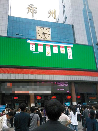 16日傍晚,網(wǎng)友“xinlong911”商都社區(qū)發(fā)帖爆料,稱當(dāng)天下午2時左右他去鄭州火車站送人。發(fā)現(xiàn)本該顯示車站公告的戶外超大顯示屏上,有人正在玩紙牌。出現(xiàn)在貓撲大雜燴上等網(wǎng)帖,更是圖文并茂地直播了火車站顯示器上打牌的過程。