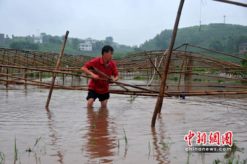 中新網(wǎng)重慶6月23日電(盧宗艷 銀雪)“早上還到縣城送貨,路上就接到工人電話說大棚被沖毀了,來回不到2個小時。”23日,重慶綦江縣永新鎮(zhèn)石塔村村民何家全看著自己承包的60余畝大棚蔬菜基地瞬間變成一片汪洋大海,心疼地說不出話來。
