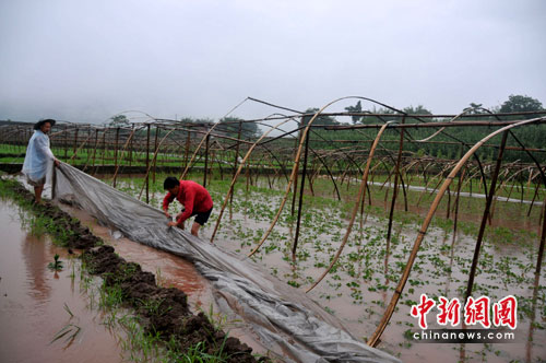 其實,何家全的大棚蔬菜基地已經(jīng)是本月第二次遭遇洪災(zāi)了。早在本月19日的暴雨中,山洪曾沖垮農(nóng)田的排水溝導(dǎo)致何家全40余畝即將上市的空心菜被沖毀,經(jīng)濟損失5萬元。災(zāi)情發(fā)生后,何家全還組織工人搶抓晴天疏通排水管道,加固田埂。沒想到,4天后的暴雨讓何家全的60畝絲瓜和茄子等蔬菜再次打水漂,經(jīng)濟損失數(shù)十萬元。
