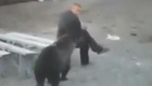 【解說】7月25日,重慶的室外溫度將近40℃,原本一動不動地趴在角落里減少體力消耗的棕熊被挑逗起來,原來,飼養員準備的“冰點”來了,美味的冰凍西瓜成為了棕熊避暑小點心。