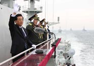 中國歷史上的首次多國海軍檢閱活動二十三日下午在青島附近黃海海域舉行。中國國家主席、中央軍委主席胡錦濤乘閱兵艦“石家莊”號導彈驅逐艦,檢閱中國海軍的潛艇、水面艦艇、海軍航空兵和海軍陸戰隊等作戰兵種,并檢閱了來訪的十四個國家的二十一艘艦艇。【中新網海軍閱兵專題】