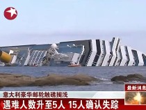 意郵輪觸礁升至5人死亡 15人確認失蹤