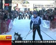 白俄羅斯:雪地上演“與愛犬共滑雪”