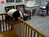 淘氣小熊貓愛翻床 腿腳敏捷酷似功夫熊貓