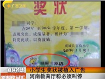 小學(xué)生獎狀植入廣告 河南教育廳稱必須叫停