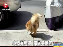 小狗秀絕技 倒立姿勢(shì)撒尿