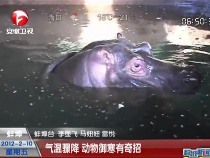河馬泡溫泉蟒蛇躺電熱毯 動(dòng)物御寒有奇招