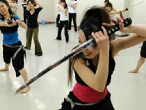 日本女白領揮舞武士刀減壓
