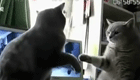 兩只貓咪一本正經練打拳