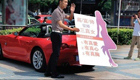 鄭州男子攜跑車街頭征婚求真胸真愛