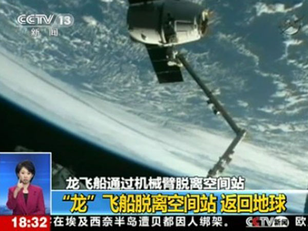 “龍”飛船脫離空間站返回地球