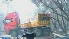 掛車失控滑行 摩托車夾縫中穿過