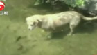 狗狗下水捉魚 靠著一張利嘴