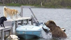 俄兩只看家狗嚇跑覓食大棕熊