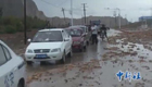 新疆突降暴雨引發洪水 百輛車被困