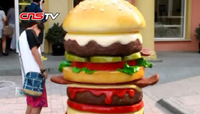 實拍挑戰10分鐘內吃掉2斤重巨型漢堡