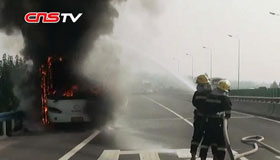 鄭州:赴少林寺中巴著火 瞬間剩空架