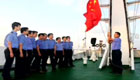 漁政船在釣魚島海域升國旗