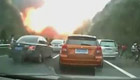 實拍懷化側翻槽罐車再次發生閃燃