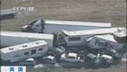 航拍美國感恩節百余輛汽車相撞