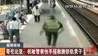 實拍:哥倫比亞機敏警察快手搭救跳鐵軌男子