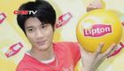 美女主持人直播球賽 被足球砸中腦袋