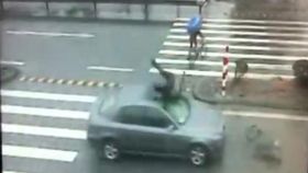 監拍:男子斑馬線被撞飛瞬間