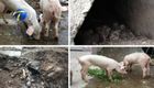 寶興縣震后第45天挖出2只幸存豬 掉膘暴瘦