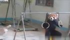 超可愛!小熊貓在吊環上做引體向上
