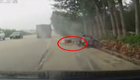 實拍貨車漂移躲避車輛橫掃路邊攤位