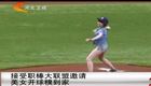 美女主持人直播球賽 被足球砸中腦袋