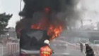 實拍北京公交車街頭自燃 濃煙滾滾