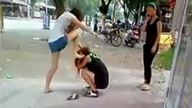 長發少女當街暴打狂踹同伴 路人旁觀
