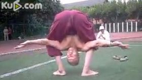 老漢表演“少林縮骨功”