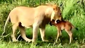 母獅抓到小牛羚后“不知所措”